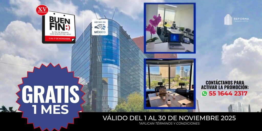 Ubicada en Avenida Paseo de la Reforma, ofrece un entorno profesional y corporativo ideal para el crecimiento y profesionalización de tu empresa.